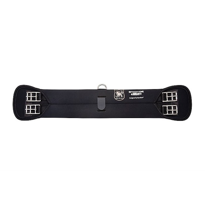 The buckles should always lay one hand above the horse's elbow. Since the girth length is measured buckle to buckle, just place the measuring tape about one hand above the elbow, run it snug under the belly to the same spot on the other side of the horse. The d-ring should be right in the middle of the horse's chest when the girth is tightened.