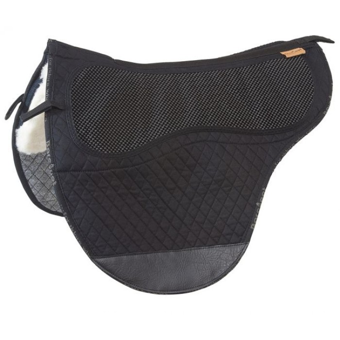 Anatomically formed saddle pad with a quilted cotton outer lining, hollow-fibre synthetic fur in the saddle area and hard-wearing felt underside.