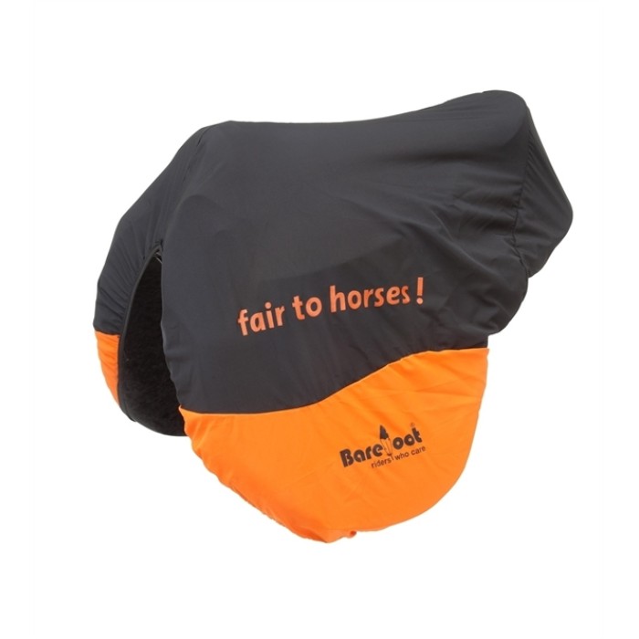 Lovely, durable, stretchy saddle cover made of orange and black colored nylon.