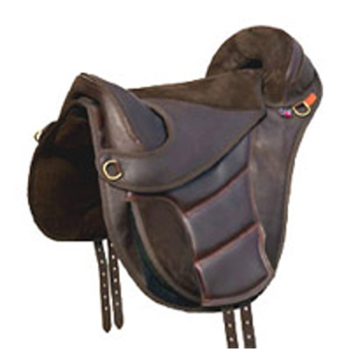 The Exmoor treeless saddle has suede covered foam panels, creating a gullet for spine clearance.