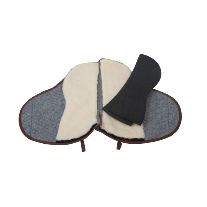 Anatomically formed saddle pad with a quilted cotton outer lining, hollow-fibre synthetic fur in the saddle area and hard-wearing felt underside.