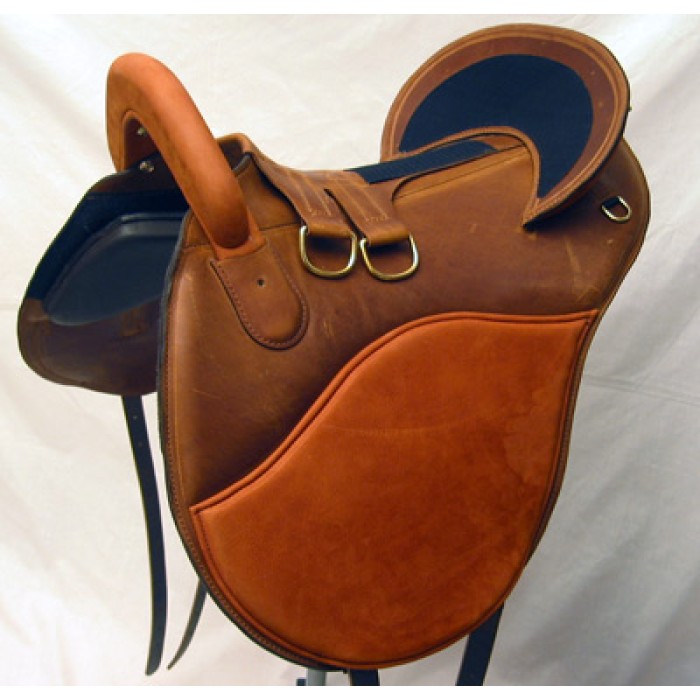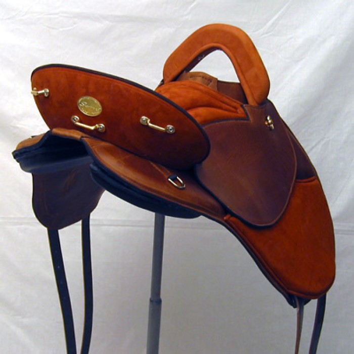 This saddle uses a closed ring for stirrup leather attachment. We strongly advise the use of additional safety equipment like safety stirrups to reduce the chances of your foot being caught in the stirrups during a fall.