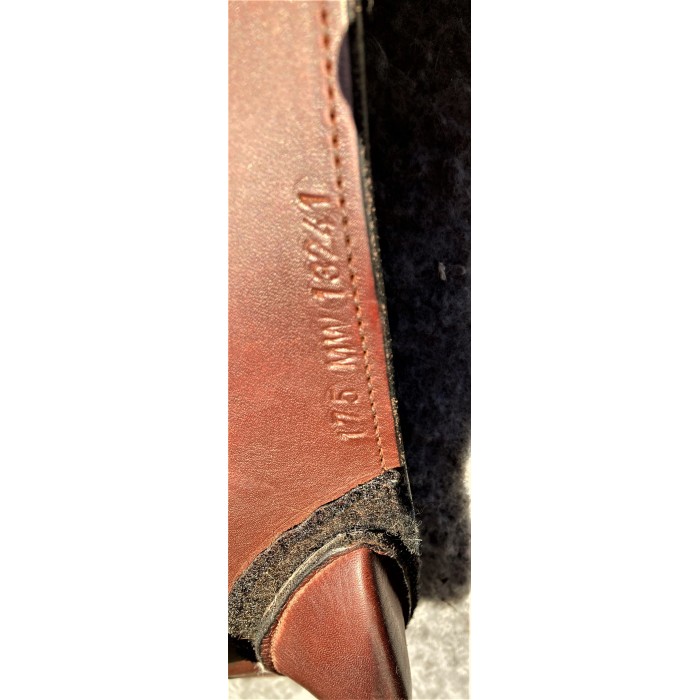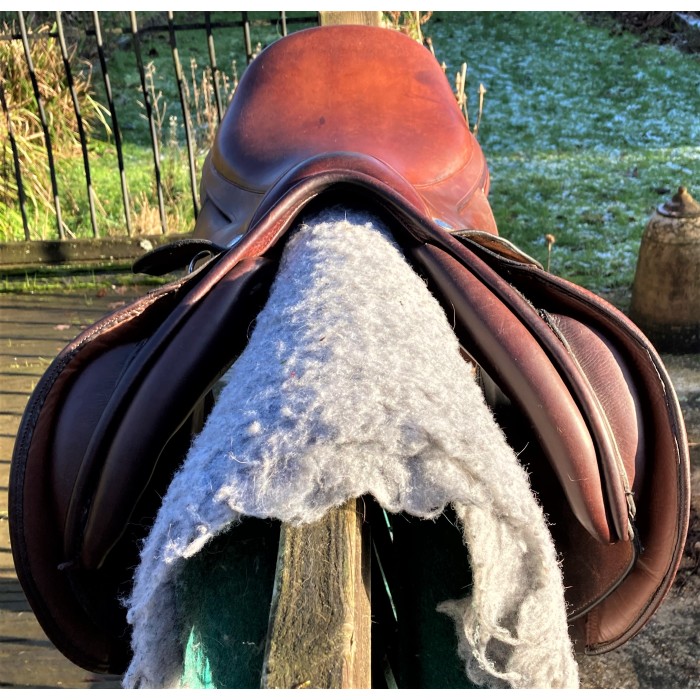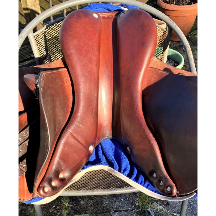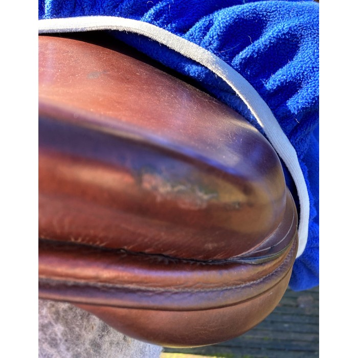 The saddle was originally a wide fit, but as the horse it was made for, matured and changed in shape, it was altered by Frank Baines Saddlery to a Medium Wide. Since then, the saddle seems to have changed back towards the wide fit (which was pointed out by Frank Baines Saddlery that this is what may happen). So, it no longer fits the horse.